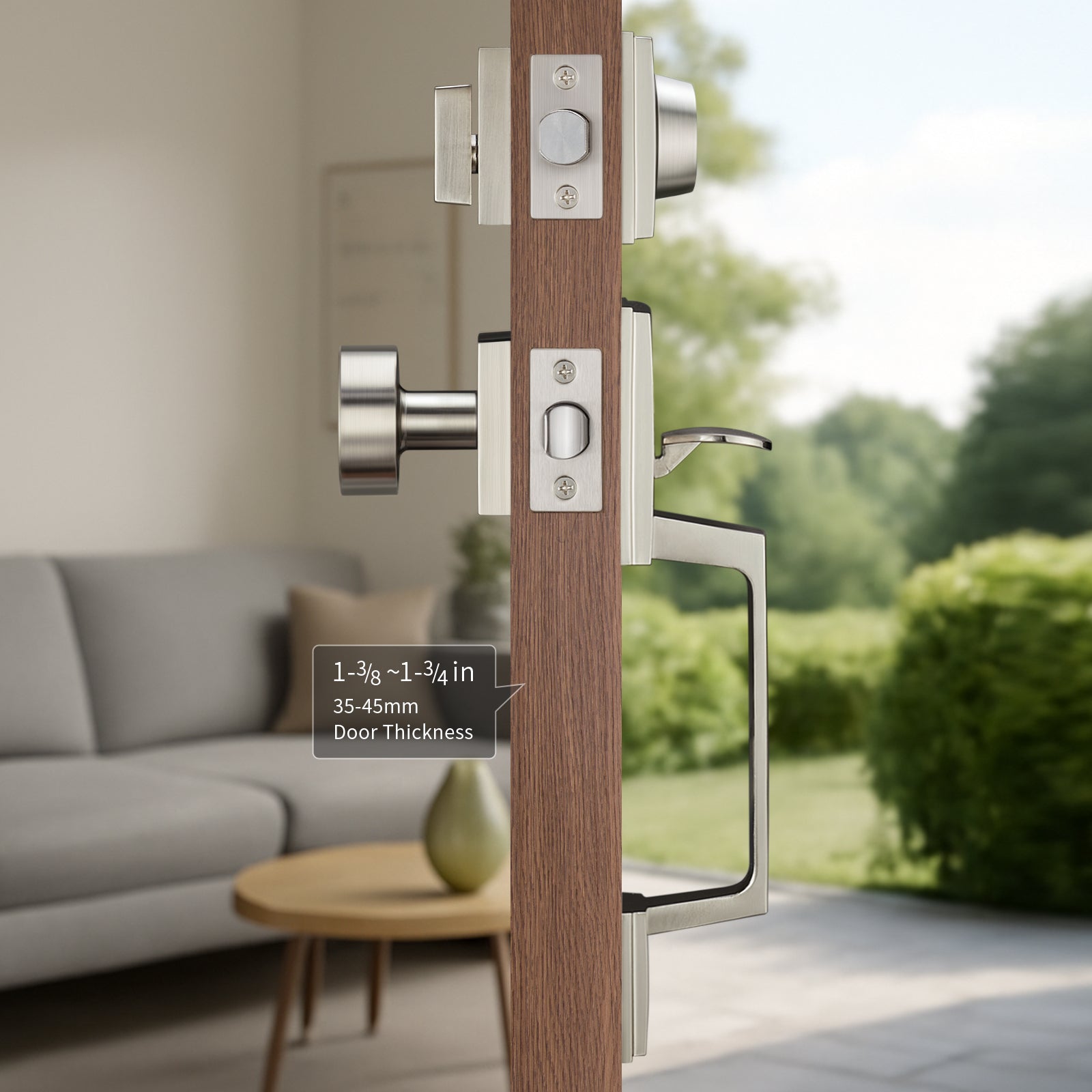 - Reversible for Left or Right Doors: Easily adjustable to fit both left-handed and right-handed doors. Suitable for 1-3/8” to 1-3/4” door thickness with adjustable throughbolt design—no need for extra drilling or customization