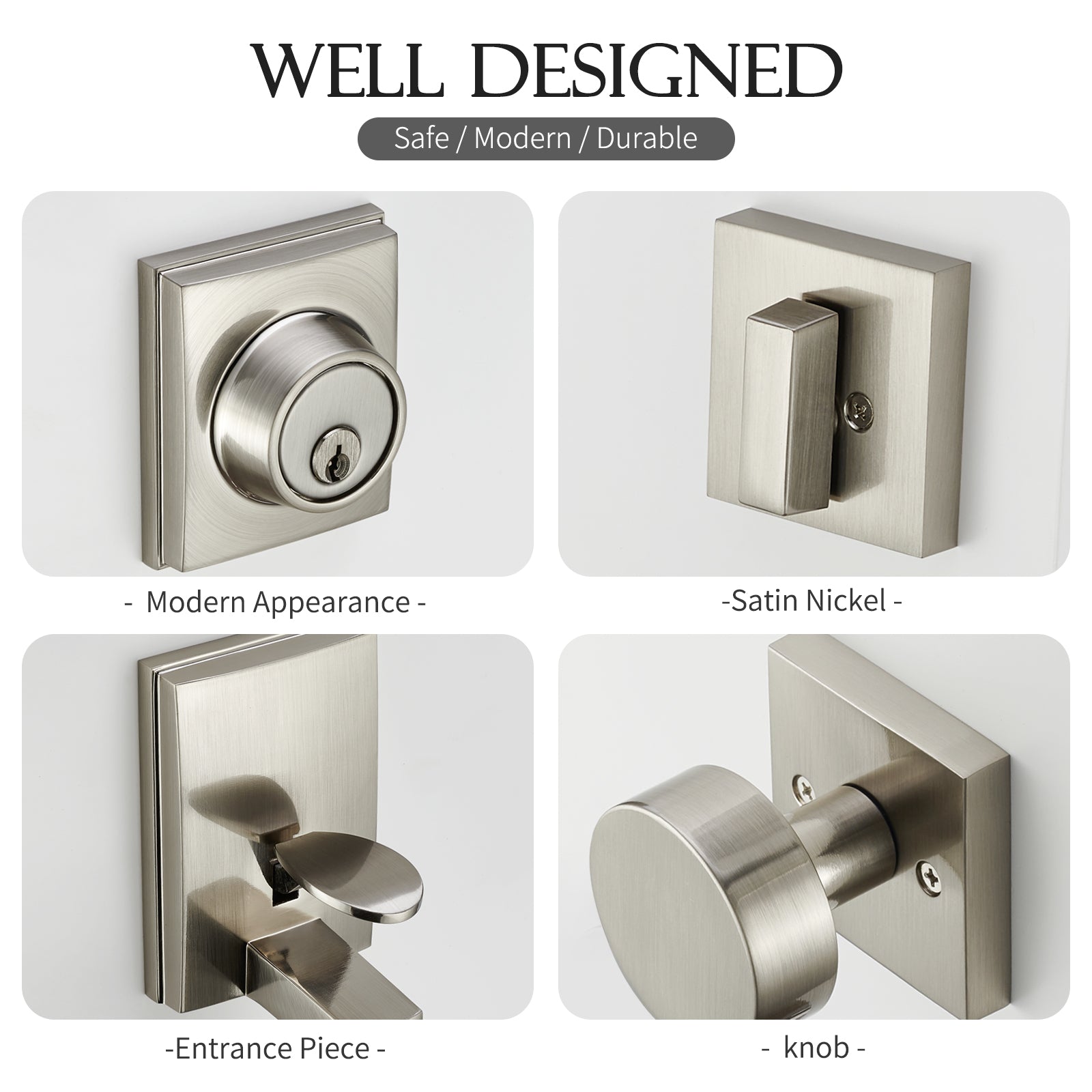 - Modern Aesthetic with Comfort Grip: This satin nickel handle set blends minimalist style with comfort. The ergonomic curved handle provides a firm, comfortable grip while complementing both traditional and modern decor